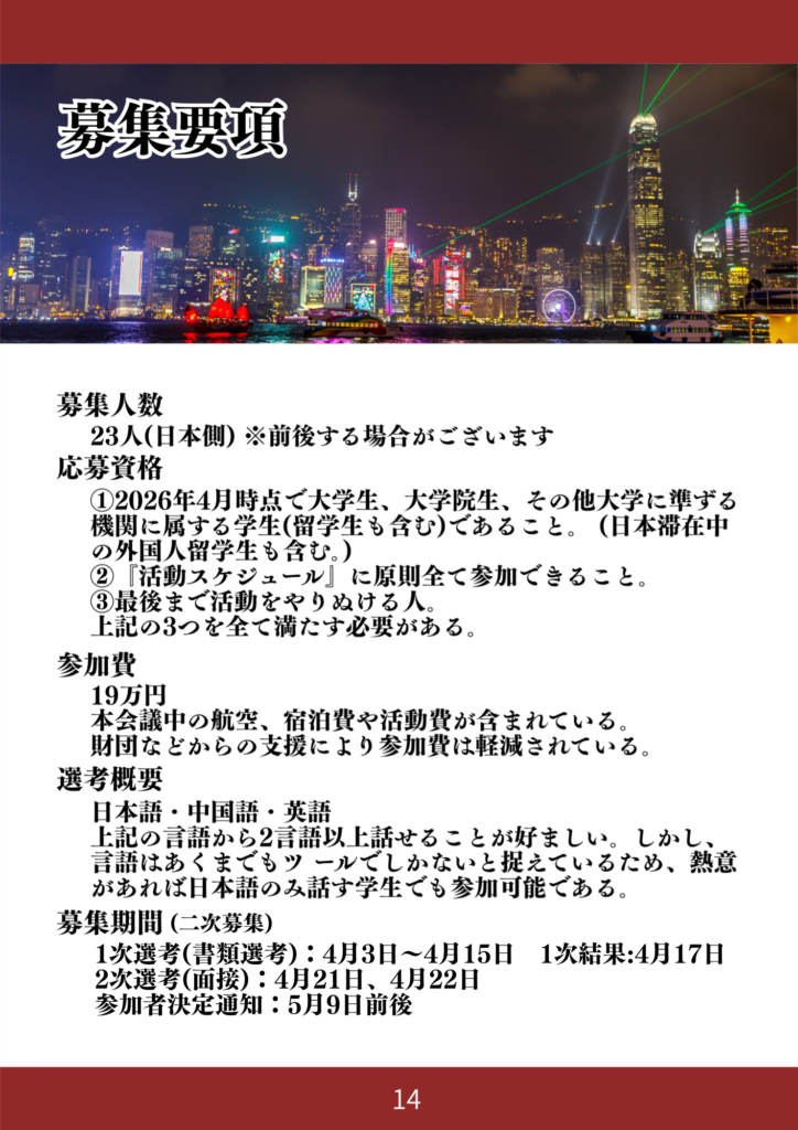 第45回日中学生会議 二次募集開始
